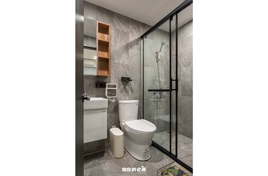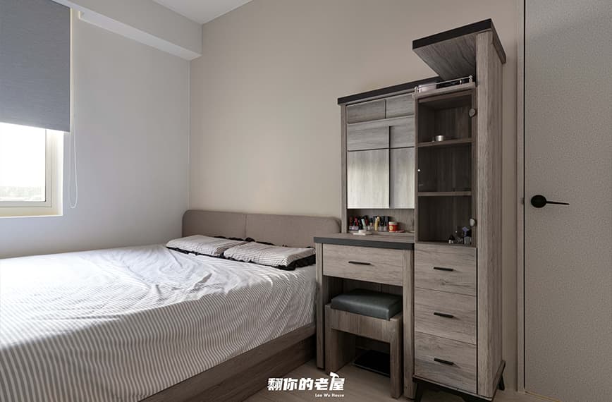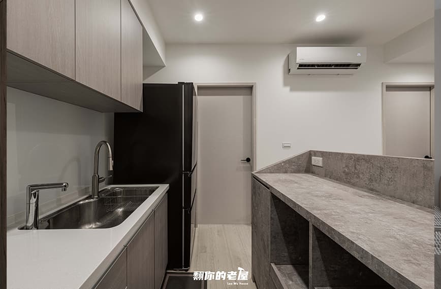 此次裝修案,屋主是公務員,長時間需要在外出差,因為家庭成員較多,原本只有一間衛浴,想要再新增一間衛浴,而且有拜拜的習慣,原本的神明廳想要保留,但本身房屋空間有限,在18坪的空間,原本他們想要四個房間,空間分配實在是太困難,因此調整為3房,把煙燻老宅徹底翻新,讓家人能有好的居住環境。