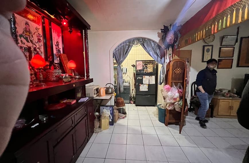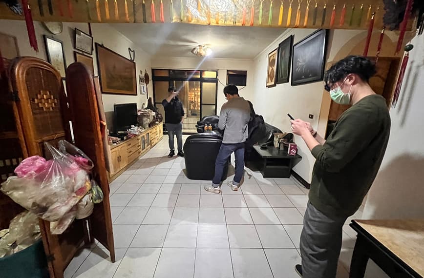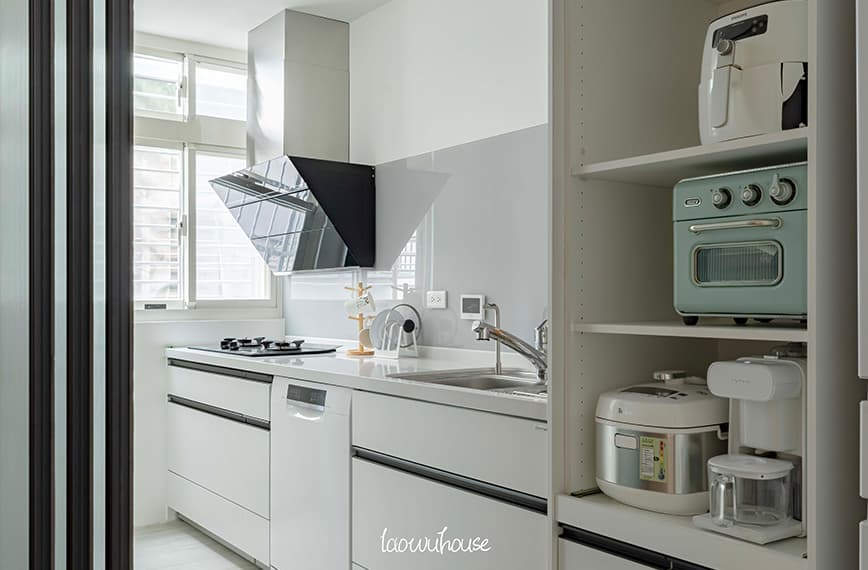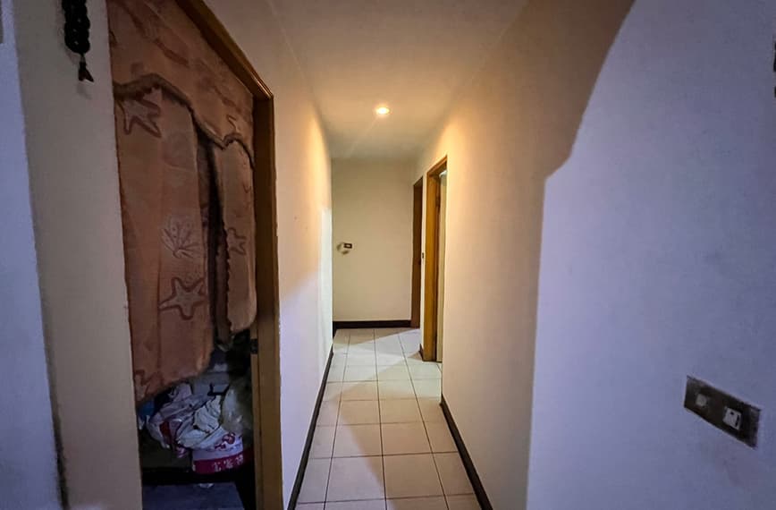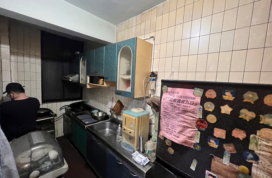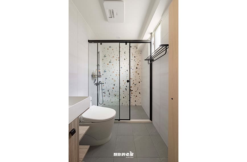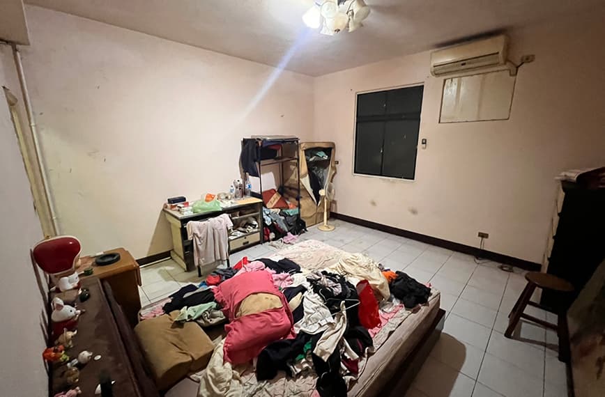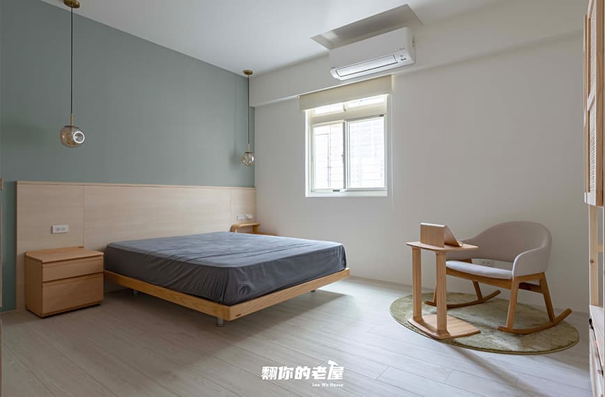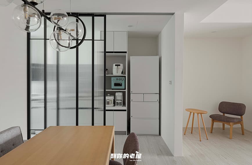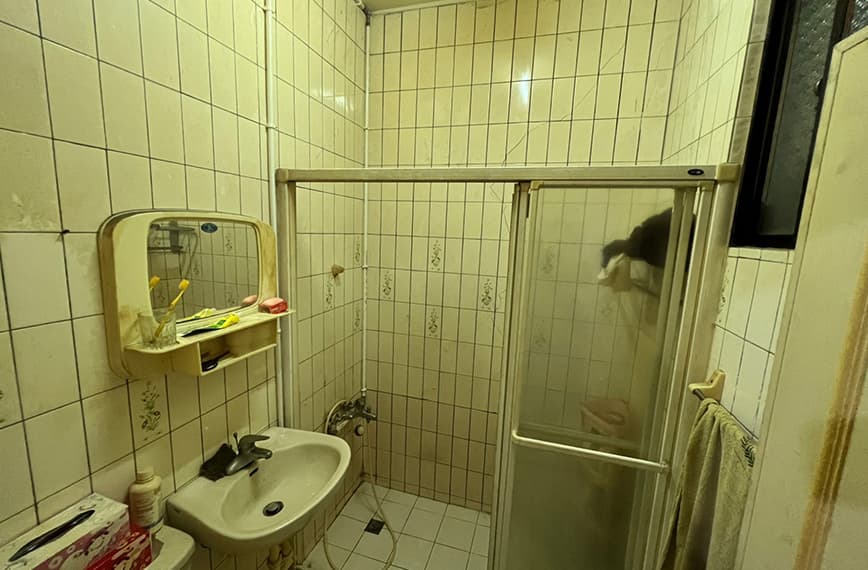客廳天花板有大面積漏水跡象,牆體周圍也有侵蝕結構的痕跡,屋主一家人這次決定翻修,就是要告別持續漏水的困擾,平時就會看書的她,一直想像能有屬於自己的書房,結合了生活的收納、漏水問題,如今已開心的入住他們的新家。