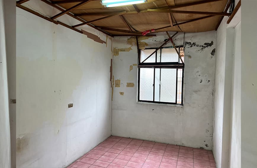 屋主是一對年邁的夫婦,由於家人在外縣市工作也買了新的住處,同時也因為膝蓋老化無法再負荷每天爬樓梯的困擾,經過討論後決定把原本的家改造出租,給父母一個好的居住環境,把原本的房子重新整理,出租給下一個家庭使用,經過團隊討論,在有限的預算下壁需先解決屋況瑕疵!上層的漏水問題﹑整棟水錶整理﹑漏水導致天花板崩落處的補強,確認沒問題後才能確認後續居住使用無虞。